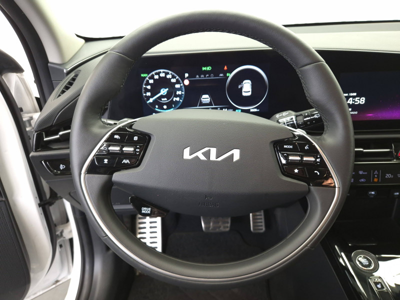 abs avec répartiteur électronique de freinage (ebd) / accès et démarrage mains libres (smart key) / accoudoir central ar avec porte-gobelets intégrés / accoudoir central av avec compartiment de rangement / aide au maintien dans la file (lka) / airbags frontaux, latéraux av, rideaux av et ar, central av et genoux côté conducteur / alerte de vigilance du conducteur (daw) / allumage automatique des projecteurs en fonction de la luminosité / appuis-tête av et ar réglables en hauteur et en inclinaison (à l'av uniquement) / assistance active à la conduite dans les embouteillages (lfa) / assistance active à la conduite sur autoroute (hda) / bac de rangement et porte-bouteille dans les contre-portes av / béquet ar intégré au hayon avec feux stop à led / boucliers de protection av et ar en finition chrome / cache-bagage en toile recyclée pliable / caméra de recul avec lignes de guidage dynamiques / combiné d'instrumentation 100 % digital 10.25'' / compartiments de rangement sous le plancher de coffre / connectiques usb (x2) à charge accélérée au dos des sièges av / connectique usb à charge accélérée sur la partie inférieure de la planche de bord / connectique usb à l'av / console centrale avec éclairage d'ambiance personnalisable / coques de rétroviseurs couleur carrosserie / crochets de fixation dans le coffre / diffuseur d'air aux places ar / direction à assistance électrique asservie à la vitesse / eclairage d'ambiance personnalisable / eclairage dans le coffre / ecran tactile 10,25" compatible android auto et apple carplay avec système de navigation et services connectés kia connect live / gestion intelligente des feux de route (hba) / inserts finition carbone brut sur la console centrale et les contre-portes / inserts finition carbone brut sur le tableau de bord / kit de dépannage en cas de crevaison / lève-vitres av et ar électriques, séquentiels à l'av / moulures de bas de portes et arches de roues contrastées noir laqué / pack confort siège conducteur à réglages électriques, siège conducteur à réglages lombaires électriques, système de chargement du smartphone par induction, hayon électrique à ouverture mains libres / palettes de modulation de la puissance de freinage régénératif au volant (en mode eco) / pare-soleil avec miroir de courtoisie illuminé (conducteur et passager) / pédalier et seuils de portes en finition aluminium / poche aumonière au dos du siège conducteur / poche aumonière au dos du siège passager av / poignées de portes extérieures couleur carrosserie / poignées de portes intérieures finition chrome satiné / radars de parking av/ar / rails de toit finition noir laqué / reconnaissance des panneaux de limitation avec régulation de vitesse (isla) / rétroviseur intérieur électrochromatique (ecm) / rétroviseurs extérieurs avec embase noir laqué / rétroviseurs extérieurs avec répétiteurs de clignotant led / sélecteur de modes de conduite eco, confort et sport / sélecteur de vitesse rotatif électronique (sbw) / sellerie en matière synthétique / services télématiques kia connect offerts pendant 7 ans / seuils de porte finition aluminium / siège passager av à réglage lombaire électrique / siège passager av à réglages électriques / spots de lecture av et d'éclairage intérieur / système audio rds, 6 hp (dont 2 tweeters), avec commandes au volant / système dab (digital audio broadcasting) système de radiodiffusion sonore numérique / système de freinage d'urgence autonome avec détection des voitures/piétons/cyclistes (fca 1.5) avec fonction croisement / système de son virtuel (émet un léger son à basse vitesse afin de prévenir les piétons distraits) / système de téléphonie mains-libres bluetooth avec reconnaissance vocale et streaming audio / systèmes intelligents de régénération (smart regen system 1.0) modulation automatique de la puissance de freinage régénératif à la décélération / témoin de niveau bas du liquide de lave-glace / verrouillage automatique des portes en roulant / volant chauffant / volant en matière synthétique