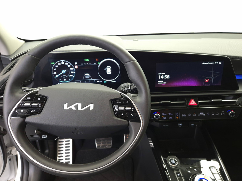 abs avec répartiteur électronique de freinage (ebd) / accès et démarrage sans clé (smart key) / accoudoir central ar avec porte-gobelets intégrés / accoudoir central av avec compartiment de rangement / aide au maintien dans la file (lka) / airbags frontaux, latéraux av, rideaux av et ar, central av et genoux côté conducteur / alerte de vigilance du conducteur (daw) / allumage automatique des projecteurs en fonction de la luminosité / appuis-tête av et ar réglables en hauteur et en inclinaison (à l'av uniquement) / assistance active à la conduite dans les embouteillages (lfa) / assistance active à la conduite sur autoroute (hda) / bac de rangement et porte-bouteille dans les contre-portes av / béquet ar intégré au hayon avec feux stop à led / boîte à double embrayage 6 rapports / boucliers de protection av et ar en finition chrome / cache-bagage en toile recyclée pliable / caméra de recul avec lignes de guidage dynamiques / combiné d'instrumentation 100 % digital 10.25'' / compartiments de rangement sous le plancher de coffre / connectiques usb (x2) à charge accélérée au dos des sièges av / connectique usb à charge accélérée sur la partie inférieure de la planche de bord / connectique usb à l'av / console centrale avec éclairage d'ambiance personnalisable / contrôle de traction (tcs) / coques de rétroviseurs couleur carrosserie / crochets de fixation dans le coffre / diffuseur d'air aux places ar / direction à assistance électrique asservie à la vitesse / eclairage d'ambiance personnalisable / eclairage dans le coffre / ecran tactile 10,25'', système de navigation, cartographie europe, mise à jour de la cartographie et services connectés kia connect live offerts pendant 7 ans, compatibilité android auto et apple carplay / gestion intelligente des feux de route (hba) / inserts finition carbone brut sur la console centrale et les contre-portes / inserts finition carbone brut sur le tableau de bord / kit de dépannage en cas de crevaison / lève-vitres av et ar électriques, séquentiels à l'av / moulures de bas de portes et surlignage des passages de roues en finition noir laqué / pack confort siège conducteur à réglages électriques, siège conducteur à réglages lombaires électriques, système de chargement du smartphone par induction, hayon électrique à ouverture mains libres / palettes de modulation de la puissance de freinage régénératif au volant (en mode eco) / pare-soleil avec miroir de courtoisie illuminé (conducteur et passager) / pédalier et seuils de portes en finition aluminium / poche aumonière au dos du siège conducteur / poche aumonière au dos du siège passager av / poignées de portes extérieures couleur carrosserie / poignées de portes intérieures finition chrome satiné / pommeau de levier de vitesses gainé cuir / radars de parking av/ar / rails de toit finition noir laqué / reconnaissance des panneaux de limitation avec régulation de vitesse (isla) / rétroviseur intérieur anri-éblouissement / rétroviseur intérieur électrochrome (ecm) / rétroviseurs extérieurs avec embase noir laqué / rétroviseurs extérieurs avec répétiteurs de clignotant led / sélecteur de modes de conduite eco, confort et sport / sélecteur de vitesse rotatif électronique (sbw) / sellerie en matière synthétique noir fusain / services télématiques kia connect offerts pendant 7 ans / seuils de porte finition aluminium / siège passager à réglages lombaires électriques / siège passager av à réglages électriques / spots de lecture av et d'éclairage intérieur / système audio rds, 6 hp (dont 2 tweeters), avec commandes au volant / système dab (digital audio broadcasting) système de radiodiffusion sonore numérique / système de freinage d'urgence autonome avec détection des voitures/piétons/cyclistes (fca 1.5) avec fonction croisement / système de son virtuel (émet un léger son à basse vitesse afin de prévenir les piétons distraits) / système de téléphonie mains-libres bluetooth avec reconnaissance vocale et streaming audio / systèmes intelligents de régénération (smart regen system 1.0) modulation automatique de la puissance de freinage régénératif à la décélération / témoin de niveau bas du liquide de lave-glace / verrouillage automatique des portes en roulant / volant chauffant / volant en matière synthétique