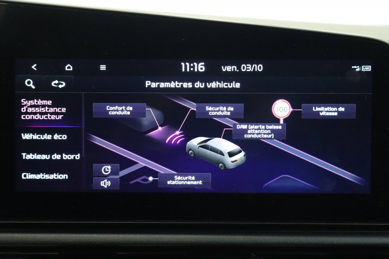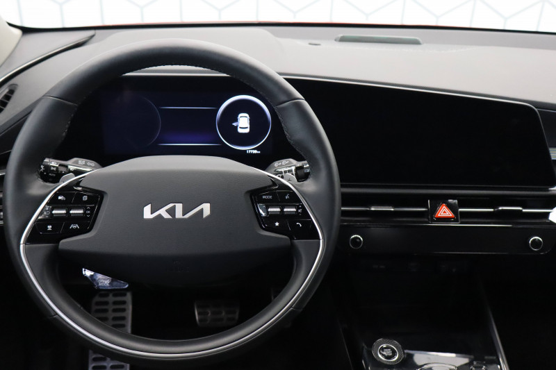 abs avec répartiteur électronique de freinage (ebd) / accès et démarrage mains libres (smart key) / accoudoir central ar avec porte-gobelets intégrés / accoudoir central av avec compartiment de rangement / aide au maintien dans la file (lka) / airbags frontaux, latéraux av, rideaux av et ar, central av et genoux côté conducteur / alerte de vigilance du conducteur (daw) / allumage automatique des projecteurs en fonction de la luminosité / appuis-tête av et ar réglables en hauteur et en inclinaison (à l'av uniquement) / assistance active à la conduite dans les embouteillages (lfa) / assistance active à la conduite sur autoroute (hda) / bac de rangement et porte-bouteille dans les contre-portes av / béquet arrière intégré au hayon avec feux stop à led / bouclier de protection finition chrome / cache-bagage en toile recyclée pliable / caméra de recul avec lignes de guidage dynamiques / combiné d'instrumentation 100 % digital 10.25'' / compartiments de rangement sous le plancher de coffre / connectiques usb (x2) à charge accélérée au dos des sièges av / connectique usb à charge accélérée sur la partie inférieure de la planche de bord / connectique usb à l'av / coques de rétroviseurs couleur carrosserie / crochets de fixation dans le coffre / diffuseur d'air aux places ar / direction à assistance électrique asservie à la vitesse / eclairage d'ambiance personnalisable / eclairage dans le coffre / ecran tactile couleur 10,25'' avec compatibilité via câble usb android auto et apple carplay / gestion intelligente des feux de route (hba) / hayon ar électrique à ouverture mains-libres / inserts finition carbone brut sur le tableau de bord / kia charge: service dédié de recharge en itinérance (application et carte de recharge) / kit de dépannage en cas de crevaison / lève-vitres av et ar électriques, séquentieles à l'av / moulures de bas de portes et arches de roues contrastées noir laqué / palettes au volant (modulation puissance freinage en mode eco et changements vitesses en mode sport) / pare-soleil avec miroir de courtoisie illuminé (conducteur et passager) / pédalier et seuils de portes en finition aluminium / plancher de coffre modulable / poches aumonières au dos des sièges av / poignées de portes extérieures couleur carrosserie / poignées de portes intérieures finition chrome satiné / pommeau de levier de vitesses gainé cuir / radars de parking av/ar / rails de toit finition noir laqué / reconnaissance des panneaux de limitation avec régulation de vitesse (isla) / rétroviseur intérieur électrochrome / rétroviseurs extérieurs avec répétiteurs de clignotant led / sélecteur de vitesse rotatif électronique (sbw) / services télématiques kia connect offerts pendant 7 ans / seuils de portes av et ar finition aluminium / sièges av à réglages lombaire électrique / spots de lecture av et d'éclairage intérieur / système audio rds, 6 hp (dont 2 tweeters), avec commandes au volant / système dab (digital audio broadcasting) : système de radiodiffusion sonore numérique / système dab (digital audio broadcasting) système de radiodiffusion sonore numérique / système de freinage d'urgence autonome avec détection des voitures/piétons/cyclistes (fca 1.5) avec fonction croisement / système de navigation avec cartographie europe et services connectés kia connect live offerts pendant 7 ans / système de son virtuel (émet un léger son à basse vitesse afin de prévenir les piétons distraits) / système de téléphonie mains-libres bluetooth avec reconnaissance vocale et streaming audio / témoin de niveau bas du liquide de lave-glace / verrouillage automatique des portes en roulant / volant chauffant / volant en cuir artificiel