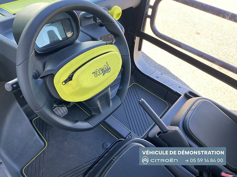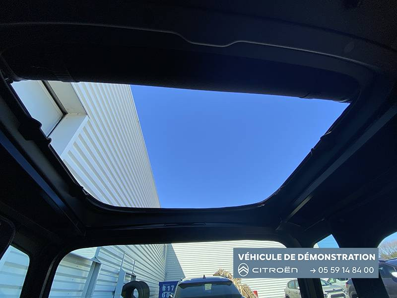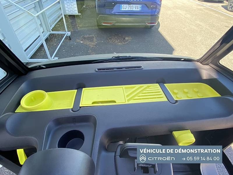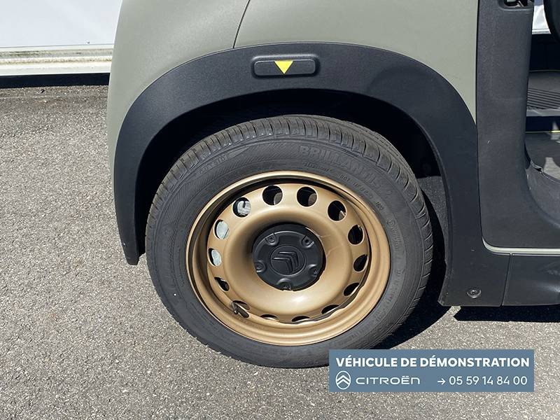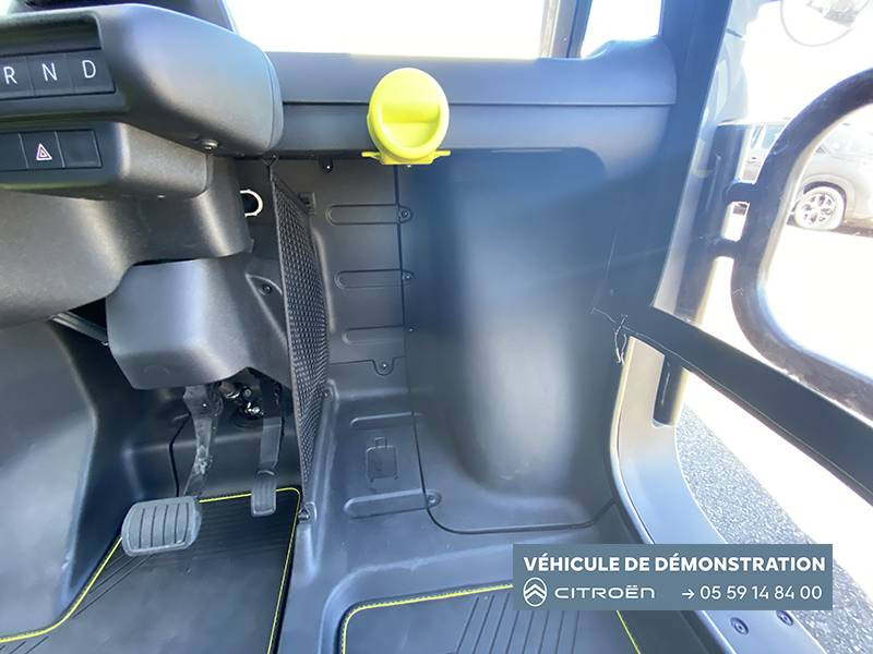 1 prise usb -c sur la planche de bord (charge rapide 3a) / abs avec ref, afu et esp / avertisseur sonore piéton / boîtier télématique : appel d'urgence et citroën assistance les services connect one pendant une période de 10 ans / câble de recharge mode 3 triphasé 3x32a pour prise de charge t2, longueur 6 mètres / chargeur embarqué 7.4 kw monophasé / coques de rétroviseurs extérieurs noir mat / détection de sous-gonflage / elargisseurs d'ailes noir mat / enjoliveurs 16" pyrite / frein de stationnement électrique / garnissage tissu noir / tissu gris chiné avec les décors sur les panneaux de portes av/ar et sur la planche de bord ultra blue. / head-up display (affichage tête haute) tft / kit de dépannage provisoire de pneumatiques / lève-vitres av électriques (descente séquentielle) / pack safety - active safety brake (freinage automatique d'urgence) - alerte active de franchissement involontaire de ligne - alerte attention conducteur - reconnaissance des panneaux de signalisation - régulateur-limiteur de vitesse - alerte risque collision / poignées de portes extérieures noir brillant / services connect plus pendant 12 mois / station d'accueil smartphone radio via smartphone (avec application my citroën play), 2 hp en rang 1, commande de la radio sur le volant / suspension citroën advanced comfort / témoin de non-bouclage des ceintures de sécurité conducteur et passagers