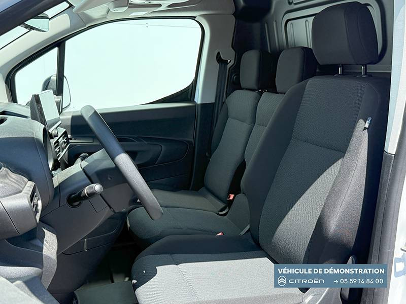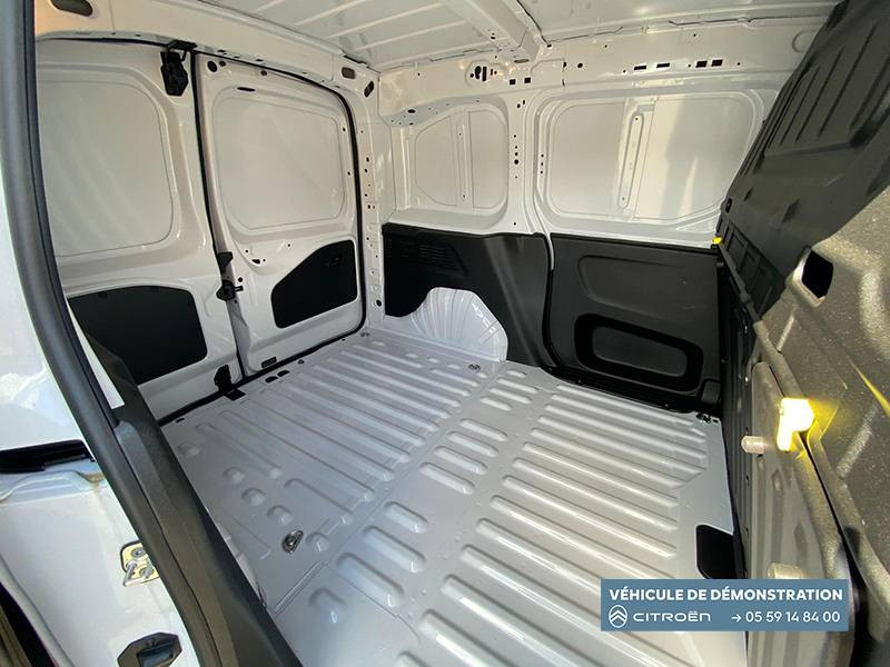 6 anneaux d'arrimage au sol dans la zone de chargement / airbags conducteur et passager: frontaux, latéraux et rideaux / boîte à gant ouverte en partie basse côté passager / boîte à gants fermée et réfrigérée en partie haute côté passager / capucine / cloison pleine fixe / commutation automatique des feux de route / connect box avec pack sos et assistance inclus / détection de sous-gonflage / essuie-vitres av magic wash / garnissage tissus curitiba triton meltem / jantes tôle 15" grises avec cabochon avec pneumatiques 195/65 r15 91h / kit de dépannage provisoire de pneumatiques / pack safety alerte risque collision & freinage d'urgence, lecture des panneaux de vitesse, détection & alerte somnolence, alerte franchissement de ligne avec correction / portes ar battantes 60/40 tôlées avec ouverture à 180° / preventive maintenance (abonnement 4 ans inclus) tableau de bord de la flotte, alertes sur l'état du véhicule, suivi de la maintenance (& calendrier), envoi de rapports périodiques / prise 12v sur planche de bord / revêtement de sol en moquette dans l'habitacle / siège conducteur avec réglage en longueur et dossier inclinable / siège passager individuel réglable en inclinaison, appuis tête réglable en hauteur / station d'accueil smartphone, application radio avec streaming audio (2hp), kit mains libres bluetooth, 2 prises usb type c (charge uniquement)