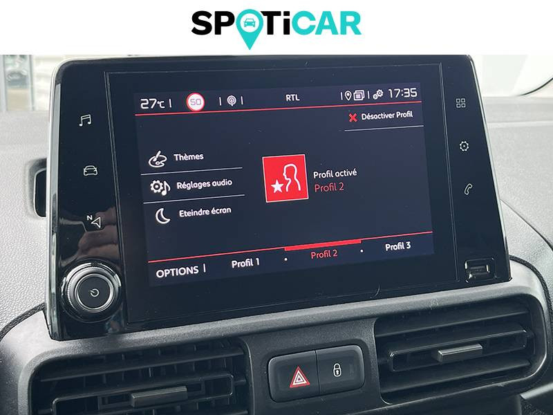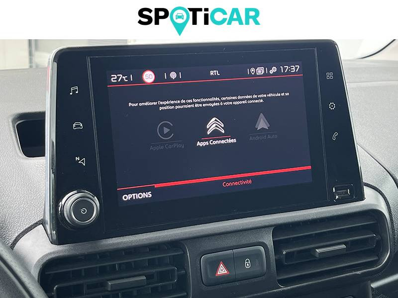 6 anneaux d'arrimage au sol dans la zone de chargement / abs, afu, asr et esp / boite à gants top box fermée / boite à gants ouverte en partie basse / capucine / citroën connect nav sur tablette tactile 8" avec fonction mirror screen et radio numérique dab / cloison pleine fixe / détection de sous-gonflage / frein de stationnement électrique / garnissage tissu mica grey / jantes tôle 15" grises avec cabochon / portes ar battantes 60/40 tôlées avec ouverture à 180° / prise 12 v sur planche de bord / siège conducteur confort (avec accoudoir, réglage en hauteur, réglage lombaire et rangement sous siège) / siège passager fixe avec grand rangement sous assise basculante / surround rear vision et rétroviseurs rabattables électriquement comprend l'aide au stationnement av et ar, la caméra de recul, et la surveillance de l'environnement ar et latéral passager avec restitution sur un écran 5'' dédiéà la place du rétroviseur intérieur / système audio mp3 (2hp + 2 tweeters) numérique dab