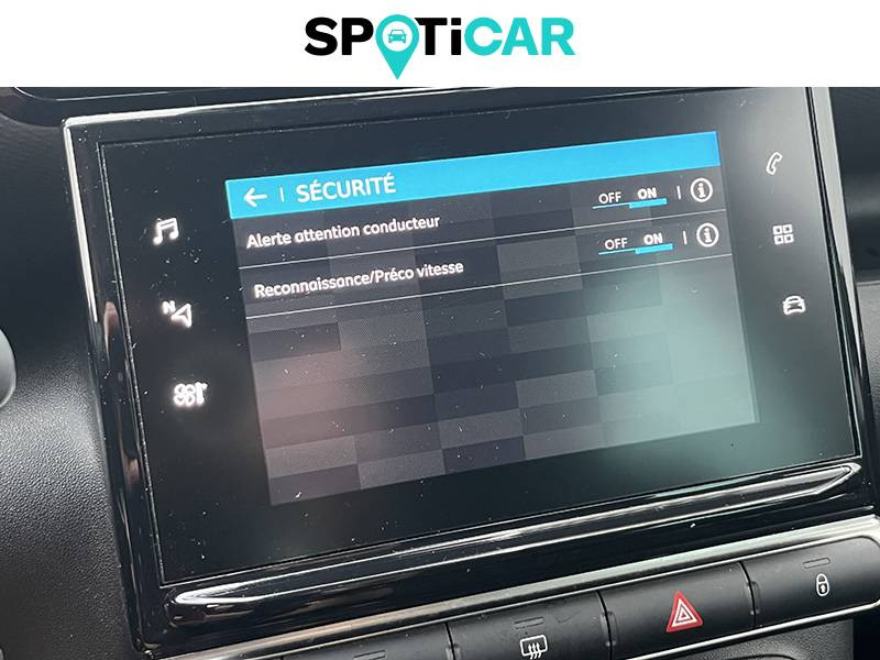 abs avec ref, afu et esp / ambiance intérieure c-series : tissu curitiba gris graphite avec étiquette brodée sur le côte du siège, la bande en haut du dossier en tissu triton rouge avec surpiqûres blanches, le bandeau de planche de bord tep corinthe satisfaction grey, et les surtapis av et ar spécifiques / barres de toit noir brillant / citroën connect box avec pack sos et assistance inclus: bouquet de services comprenant les appels d'urgence et d'assistance localisés. / citroën connect nav sur tablette tactile 9'': comprend le système de navigation tomtom, la reconnaissance vocale et durant 3 ans les services connect nav (inclut les services « zones de danger », « info trafic », « stations-service », « parkings », « météo » et « recherche locale »). / détection de sous-gonflage / elargisseurs d'ailes et bas de caisse noir mat / frein à main avec insert chrome / jantes alliage 16" x cross diamantées / kit de dépannage provisoire de pneumatiques / mirror screen / pack auto / pack safety - active safety brake - alerte active de franchissement involontaire de ligne - alerte attention conducteur - alerte risque collision - coffee break alert - reconnaissance des panneaux de vitesse et recommandation - régulateur-limiteur de vitesse - témoin de non-bouclage des ceintures de sécurité conducteur et passagers / personnalisation extérieure c-series: badges c-series sur les portes av, enjoliveurs de projecteurs et coques de rétroviseurs extérieurs deep red anodisé / poignées de portes extérieures couleur caisse / prise 12v en arrière de console centrale / projecteurs antibrouillard led avec éclairage statique d'intersection / rehausse de siège conducteur / sabots de protection av et ar gris anthra / système audio numérique (dab) mp3 6 hp / teinte de caisse opaque blanc banquise / toit noir perla nera