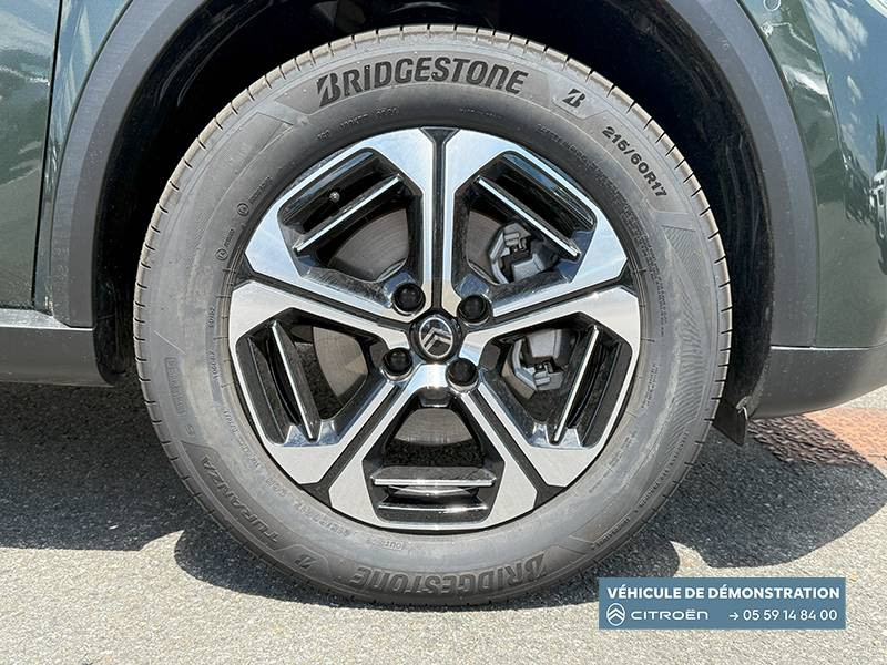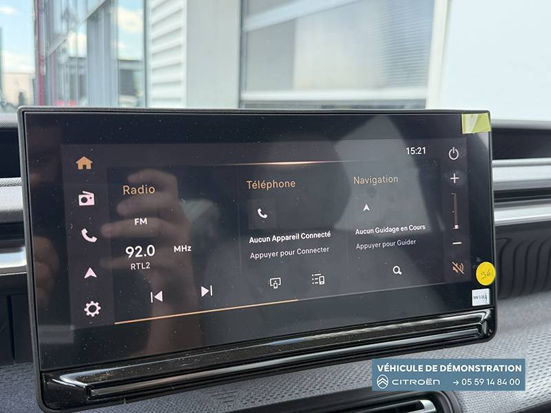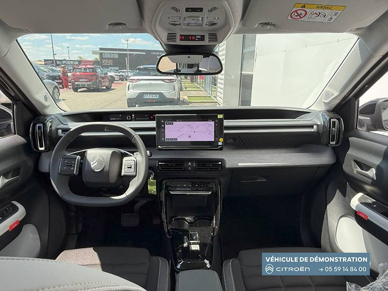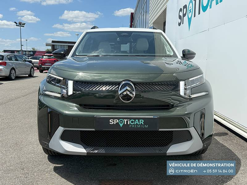 1 prise usb type-c (charge rapide 3a) sur la console centrale / 1 prise usb type-c (charge standard et data) sur la planche de bord / 2 prises usb type-c (charge rapide 3a) en rang 2 / abs, esp, tcs / aérateurs latéraux en noir brillant et 2 aérateurs en zone centrale sur planche de bord / afu, ref / anneau de remorquage av et ar / application e-routes (planificateur de voyage intelligent) via pack connect plus gratuit pendant une période d'essai de 12 mois / avertisseur sonore monoton / avertisseur sonore piéton / banquette ar avec dossier fractionnable 2/3 et 1/3 / barres de toit noir brillant / boîte automatique 1 vitesse / boîtier télématique: appel d'urgence et citroën assistance les services connect one pendant une période de 10 ans / câble de charge mode 3 (wall box) pour prise de charge t2, longueur 6 mètres / centre de roue noir avec logo / chargeur embarqué 7.4 kw monophasé / citroën head up display (affichage tête haute) - lcd / console centrale haute avec accoudoir et rangement fermé / décors extérieurs noir brillant / décors sur les panneaux de portes av/ar et sur la planche de bord sidérite / détection de sous-gonflage / eclairage d'accompagnement et d'accueil / eclairage d'ambiance monochromatique / ecran central 10,25 " tactile: apple carplay et android auto sans fil système audio 6 hps (dab) / elargisseurs d'ailes noir mat / e-remote (commande à distance): contrôle de la charge / essuie-vitre av automatique (capteur de pluie) / frein de stationnement électrique / garnissage maille hello noire /toile enduite gris clair ambiance metropolitan grey avec sièges advanced comfort / jantes alliage 17" aragonite diamantées (avec pneus classe a chainables) / lève-vitres ar électriques (descente séquentielle) / lève-vitres av électriques (descente séquentielle) / navigation 3d sur écran central 10,25" tactile / ordinateur de bord multifonctions avec indicateur de température exterieure / pack safety - active safety brake (freinage automatique d'urgence) - alerte active de franchissement involontaire de ligne - alerte attention conducteur - reconnaissance des panneaux de signalisation - régulateur-limiteur de vitesse / plafonnier av à led avec lecteurs de cartes / planche de bord sofa recouverte de textile / plancher de coffre escamotable / poches aumônières au dos des sièges av / poignées de maintien au rang 2 / poignées de portes extérieures noir brillant / prise 12 v à l'ar de console centrale / recharge rapide en courant continu de 100 kw (borne publique) / recharge sans fil pour smartphone (puissance 15w) / rétroviseur intérieur électrochrome / sabots av et ar / services connect plus comprend les services connect plus pour une période de 1 an / suspension citroën advanced comfort / témoin de non-bouclage des ceintures de sécurité conducteur et passagers / volant gainé avec décor chrome / volet d'occultation du miroir de courtoise conducteur et passager