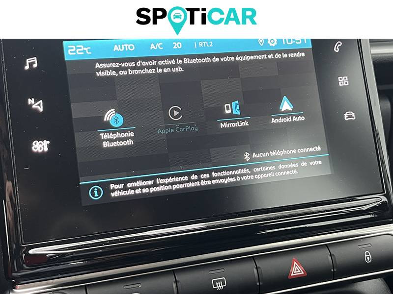 abs avec ref, afu et esp / airbump black avec ponctuelle colorée / allumage des feux de détresse en cas de forte décélération / bandeau de planche de bord noir brillant avec cerclage chrome satin / clignotants impulsionnels / climatisation automatique avec fonction filtrage de l'air / décors extérieurs noir mat / détection de sous-gonflage / elargisseurs d'ailes et bas de caisse noir mat / enjoliveurs 3d 16" steel & design / feux ar à effet 3d / kit de dépannage provisoire de pneumatiques / lève-vitres ar manuels / mirror screen / mycitroën play mirror screen, système audio numérique mp3 6 hp (dab), tablette tactile 7'' / pack color noir / pack safety / pare-soleil avec miroir occultable côtés conducteur et passager / pavillon couleur caisse / plafonnier av simple / poignées de portes extérieures couleur caisse / sécurité enfants mécanique / système audio numérique (dab) mp3 6 hp / tissu mica grey / volant moussé