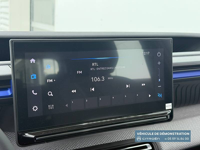 1 prise usb -c sur la planche de bord (charge rapide 3a) / 2 prises usb type-c (charge rapide 3a) en rang 2 / abs, esp, tcs / ambiance urban grey avec sièges advanced comfort / barres de toit noir brillant / boîte automatique 6 rapports / boîtier télématique: appel d'urgence et citroën assistance les services connect one pendant une période de 10 ans / citroën head up display (affichage tête haute) - tft / décors extérieurs noir brillant / détection de sous-gonflage / ecran central 10,25 " tactile: apple carplay et android auto sans fil système audio 6 hps (dab) / elargisseurs d'ailes noir mat / enjoliveurs 17" azurite / essuie-vitre av automatique (capteur de pluie) / garnissage tissu noir / tissu asphalt avec sièges advanced comfort. comprend les décors sur les panneaux de portes av/ ar et sur la planche de bord ultra blue, le siège conducteur réglable en hauteur, les appui-têtes av réglables en hauteur, les accoudoirs de porte av et ar recouverts de textile moussé avec étiquettes « happy tags » (messages positifs), et des poches aumônières au dos des sièges av / lève-vitres av électriques (descente séquentielle) / pack safety - active safety brake (freinage automatique d'urgence) - alerte active de franchissement involontaire de ligne - alerte attention conducteur - reconnaissance des panneaux de signalisation - régulateur-limiteur de vitesse / poignées de portes extérieures noir brillant / sabots de protection av et ar / station d'accueil smartphone radio via smartphone (avec application my citroën play), 2 hp en rang 1, commande de la radio sur le volant / suspension citroën advanced comfort / témoin de non-bouclage des ceintures de sécurité conducteur et passagers
