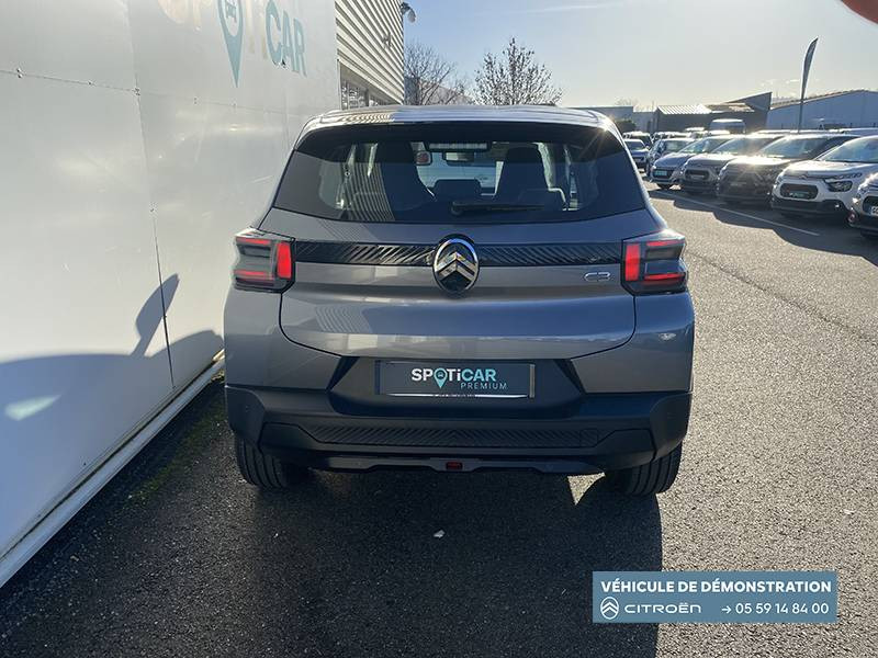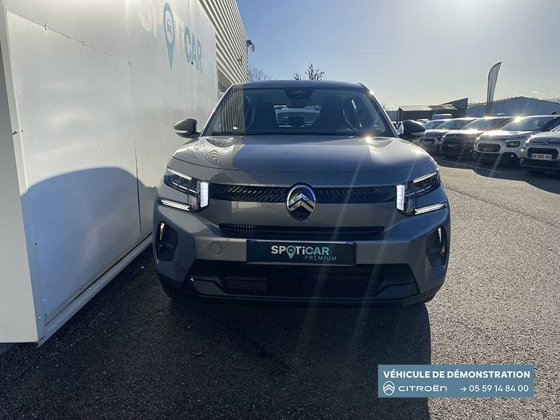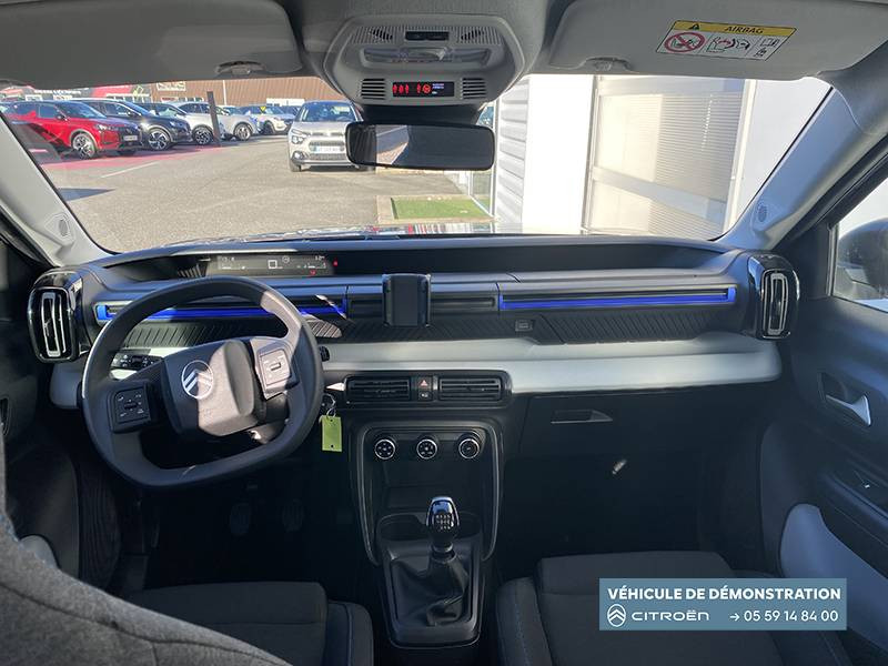 1 prise usb -c sur la planche de bord (charge rapide 3a) / abs avec ref, afu et esp / boîtier télématique : appel d'urgence et citroën assistance les services connect one pendant une période de 10 ans / citroën head up display (affichage tête haute) - lcd / coques de rétroviseurs extérieurs noir mat / détection de sous-gonflage / elargisseurs d'ailes noir mat / enjoliveurs 16" pyrite / garnissage tissu noir / tissu gris chiné avec les décors sur les panneaux de portes av/ar et sur la planche de bord ultra blue. / lève-vitres av électriques (descente séquentielle) / pack safety - active safety brake (freinage automatique d'urgence) - alerte active de franchissement involontaire de ligne - alerte attention conducteur - reconnaissance des panneaux de signalisation - régulateur-limiteur de vitesse - alerte risque collision / poignées de portes extérieures noir mat / station d'accueil smartphone radio via smartphone (avec application my citroën play), 2 hp en rang 1, commande de la radio sur le volant / suspension citroën advanced comfort / témoin de non-bouclage des ceintures de sécurité conducteur et passagers