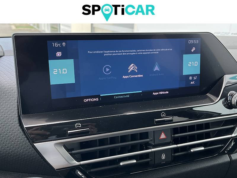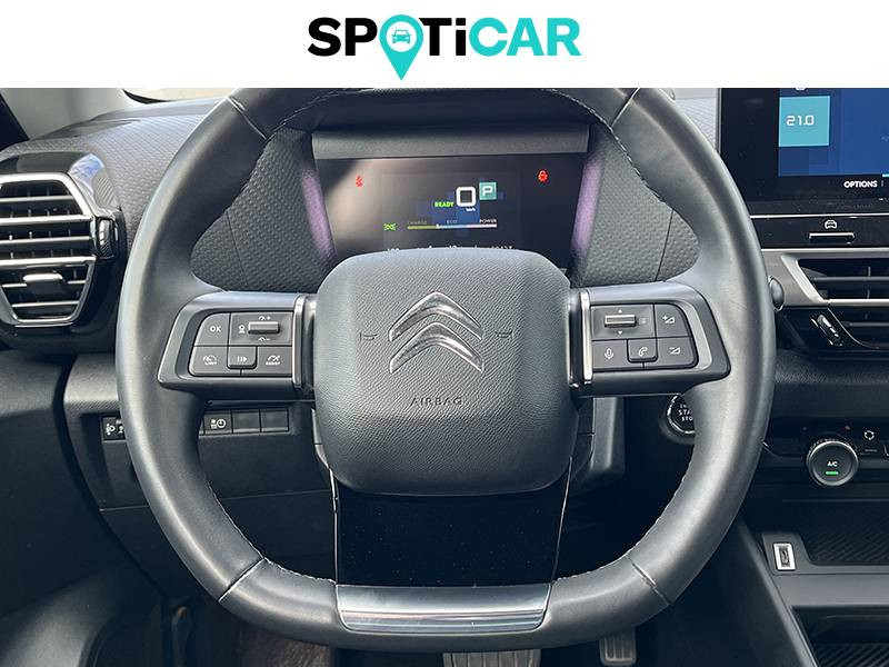 2 prises usb au rang 1 (1 type c + 1 type a) / abs avec ref, afu et esp / accès et démarrage mains libres proximity / aérateurs centraux en rang 2 / avertisseur sonore piéton / câble de recharge mode 2 renforcé 16a (pour prise type green up),longueur 6 mètres / chargeur embarqué 3,4 kw monophasé / citroën connect radio numérique sur tablette tactile 10" / combiné numérique couleur avec rétro-éclairage / console centrale haute avec rangements et accoudoir / décor bleu sur les panneaux intérieurs de porte / détection de sous-gonflage / elargisseurs d'aile et bas de caisse noir mat / e-services charge my car: comprend les services "trip planner" et "charging pass" pendant 1 an / essuie-vitre av automatique (capteur de pluie) / frein de stationnement électrique automatique / garnissage textile effet cuir noir/tissu gris ambiance metropolitan grey + sièges advanced comfort / jantes alliage 18" crosslight diamantées / jupe ar noir brilliant / kit de dépannage provisoire de pneumatiques / my citroën assist: citroën connect box avec pack sos et assistance inclus / my citroën drive": citroën connect nav numérique sur tablette tactile 10'' comprend le système de navigation tomtom, la reconnaissance vocale et durant 3 ans les services connect nav (inclut les services « zones de danger », « info trafic », « stations-service », « parkings », « météo » et « recherche locale »). / my citroën play - mirror screen sans fils, compatible android auto et apple carplay, système audio numérique (dab) mp3 6 hp,tablette tactile 10" / pack color anodised blue / pack drive assist aide au stationnement av et latéral, commutation automatique des feux de route, régulateur de vitesse adaptatif avec fonction stop & go,système de surveillance d'angle mort / pack safety 2 / pack safety - active safety brake - alerte active de franchissement involontaire de ligne - alerte attention conducteur - alerte risque collision - coffee break alert - reconnaissance des panneaux de vitesse et recommandation - régulateur-limiteur de vitesse - témoin de non-bouclage des ceintures de sécurité conducteur et passagers / pack style jonc chromé sur les lécheurs de vitres latérales,vitres et lunette ar surteintées / plancher de coffre à 2 positions / poche aumônière au dos des sièges av / poignées de portes extérieures couleur caisse / préconditionnement thermique / prise 12 v en rang 1 / projecteurs antibrouillard led avec éclairage statique d'intersection / projecteurs led avec signature lumineuse en v / rétroviseur intérieur électrochrome / siège conducteur avec réglage lombaire et accoudoir / smart pad support citroën + coque générique pour tablette / surtapis av et ar / suspension citroën advanced comfort / système audio numérique (dab) mp3 6 hp / tiroir de planche de bord / volant chauffant / volant cuir pleine fleur