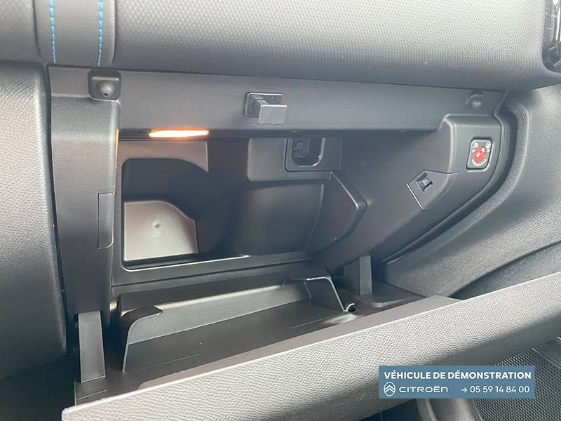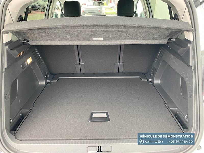 3 sièges ar indépendants, coulissants, inclinables et escamotables / abs + afu + esp + ref / boîtier télématique : appel d'urgence et citroën assistance les services connect one pendant une période de 10 ans / calandre supérieure noir brillant / caméra de recul avec top rear vision / combiné numérique 12,3" personnalisable / détection de sous-gonflage / elargisseurs d'aile et bas de caisse noir mat / enjoliveurs de contour de vitres latérales chromés / essuie-vitres av automatique magic wash / feux diurnes à led avec clignotants à led / frein de stationnement électrique automatique / garnissage tissu silica grey / navigation 3d sur écran central 10" tactile comprend le système de navigation tomtom, la reconnaissance vocale avec langage naturel, l'interface personnalisable, et les services connect plus additionnels / pack color noir brillant inserts colorés noir brillant sur airbump et bouclier av / pack safety - active safety brake - alerte active de franchissement involontaire de ligne - coffee break alert - reconnaissance étendue des panneaux et recommandation de vitesse - régulateur-limiteur de vitesse / plancher de coffre escamotable / poignées de portes extérieures noir brillant / prise 12v sur la console centrale / sabot de protection noir brillant / services connect plus pendant 12 mois / suspension citroën advanced comfort