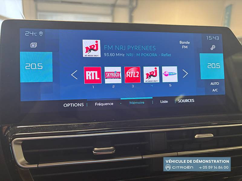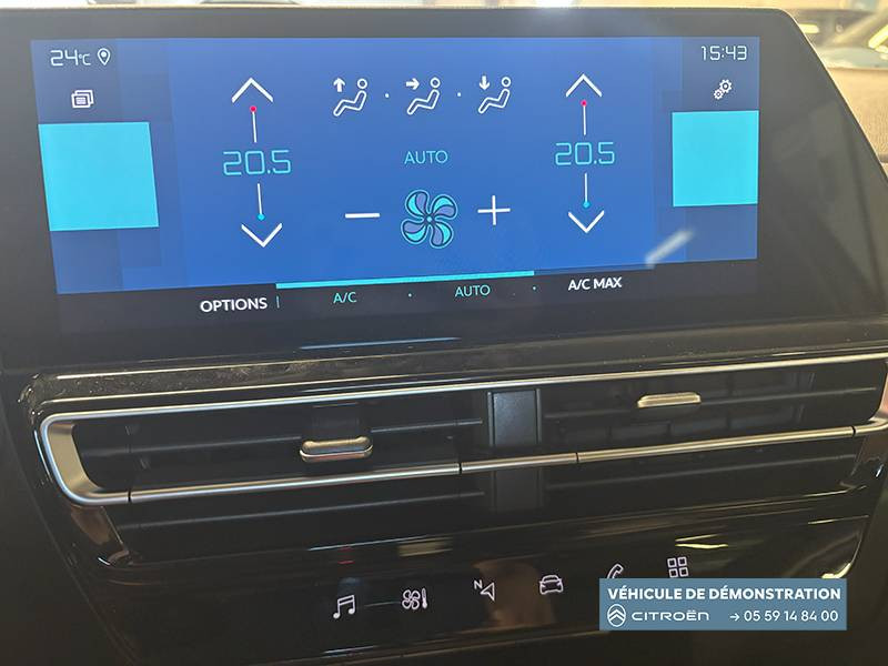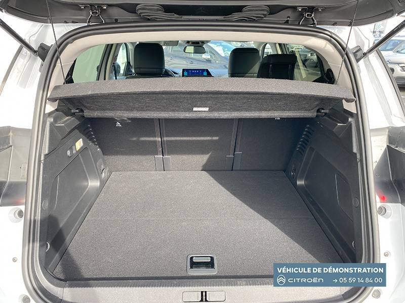 3 sièges ar indépendants, coulissants, inclinables et escamotables / abs + afu + esp + ref / boîtier télématique : appel d'urgence et citroën assistance les services connect one pendant une période de 10 ans / câble de recharge mode 2, prise de charge t2/ef, longueur 6 mètres / calandre supérieure noir brillant / caméra de recul avec top rear vision / chargeur embarqué 3,7 kw / combiné numérique 12,3" personnalisable / détection de sous-gonflage / elargisseurs d'aile et bas de caisse noir mat / enjoliveurs de contour de vitres latérales chromés / essuie-vitres av automatique magic wash / feux diurnes à led avec clignotants à led / frein de stationnement électrique automatique / garnissage tissu bruneo chine/toile enduite noire/ambiance metropolitan black avec sièges advanced comfort / inserts colorés noir brillant sur airbump et bouclier av / jantes alliage 18" pulsar diamantées bi-ton / kit de dépannage provisoire des pneumatiques / navigation sur écran central 10" tactile comprend le système de navigation tomtom, la reconnaissance vocale avec langage naturel, l'interface personnalisable, et les services connect plus additionnels / pack color noir brillant / pack safety - active safety brake - alerte active de franchissement involontaire de ligne - coffee break alert - reconnaissance étendue des panneaux et recommandation de vitesse - régulateur-limiteur de vitesse / prises 12 v sur la console centrale et dans le coffre / rétroviseur intérieur électrochrome / sabots de protection aluminium brillant / services connect plus pendant 12 mois / siège conducteur avec réglage lombaire / sièges advanced comfort / suspension citroën advanced comfort / système audio numérique bi-tuner rds mp3 (dab)