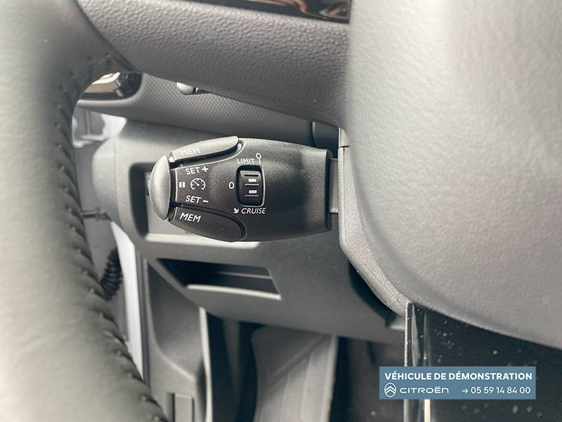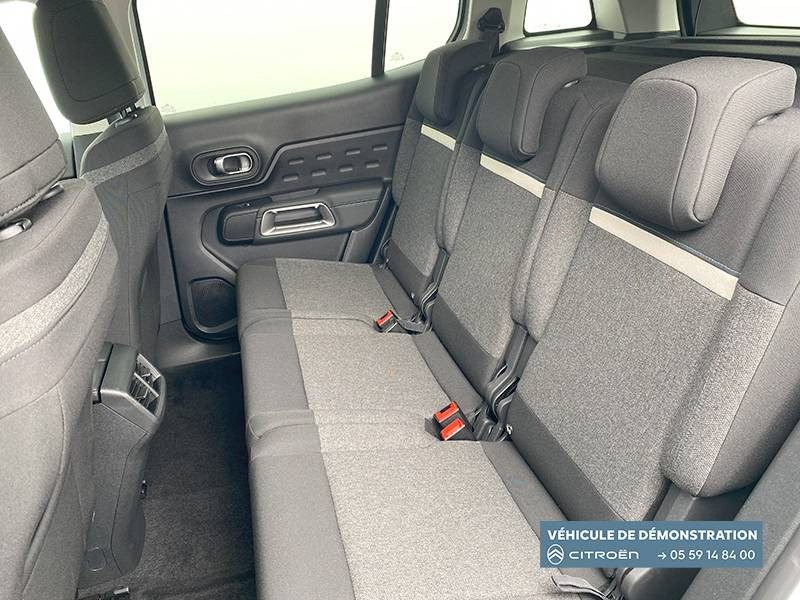3 sièges ar indépendants, coulissants, inclinables et escamotables / abs + afu + esp + ref / accès et démarrage mains libres / boîte automatique 8 rapports / boîtier télématique : appel d'urgence et citroën assistance les services connect one pendant une période de 10 ans / câble de recharge mode 2, prise de charge t2/ef, longueur 6 mètres / calandre supérieure noir brillant / caméra de recul avec top rear vision / chargeur embarqué 3,7 kw / combiné numérique 12,3" personnalisable / détection de sous-gonflage / elargisseurs d'aile et bas de caisse noir mat / enjoliveurs de contour de vitres latérales chromés / essuie-vitres av automatique magic wash / feux diurnes à led avec clignotants à led / frein de stationnement électrique automatique / garnissage tissu silica grey / navigation 3d sur écran central 10" tactile comprend le système de navigation tomtom, la reconnaissance vocale avec langage naturel, l'interface personnalisable, et les services connect plus additionnels / pack color noir brillant inserts colorés noir brillant sur airbump et bouclier av / pack safety - active safety brake - alerte active de franchissement involontaire de ligne - coffee break alert - reconnaissance étendue des panneaux et recommandation de vitesse - régulateur-limiteur de vitesse / poignées de portes extérieures noir brillant / prise 12v sur la console centrale / sabot de protection noir brillant / services connect plus pendant 12 mois / suspension citroën advanced comfort / tcs (contrôle de la traction)