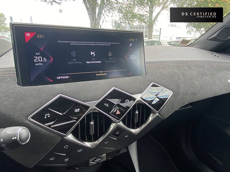 abs, afu, esp, ref / airbags frontaux aux places av avec désactivation par clé de l'airbag passager / airbags latéraux de type "thorax" aux places av et ar / alerte de survitesse / allumage automatique des feux de détresse en cas de forte décélération / antenne radio invisible / aumônières de dos sur les sièges av / badge de planche de bord "ds performance line" / badges latéraux sur portes av performance line / banquette ar 2/3 - 1/3 avec 3 appuie-tête / centre de roue carmin / clignotants impulsionnels 3 coups / combiné numérique / contrôle de traction intelligent / contrôle dynamique de stabilité (esp) avec antipatinage des roues (asr) / crochet d'arrimage dans le coffre / démarrage mains-libres avec bouton de démarrage à pulsation / détection de sous-gonflage / double canule d'échappement chromée / ds sensorial drive / ds wings noir pailleté texturé / eclairage d'accompagnement / eclairage d'accueil automatique / eclairage de boîte à gants, d'accoudoir central av et de coffre à led / eclaireur de coffre / essuie-vitre ar avec intermittence indexée à la marche ar / essuie-vitre av à déclenchement et cadencement automatiques / facade centrale a commandes sensitives / feux ar halogène / feux stop à led (3e feu) / filtre à charbon actif / fixations isofix à la place passager av et aux places latérales ar / freinage d'urgence automatique jusqu'à 85 km/h / frein de stationnement électrique / grille de calandre noir brillant / guide utilisateur numérique / indicateur de rapports engagés / inspiration ds performance line / lève-vitres av/ar électriques, séquentiels et antipincement / mirror screen / panneaux de portes en alcantara / pare-brise teinté et acoustique / pare-soleil avec miroir de courtoisie et éclairage à led / pédalier alu / pieds de rétroviseurs extérieurs couleur carrosserie / plafonnier tactile à led, liseuses ar à led, éclairage de cave à pieds à led / planche de bord en alcantara / poignées de maintien aux places ar / poignées de maintien aux places av / poignées de portes affleurantes / poignées d'ouverture de portes intérieures chromées / porte-gobelets à l' av / portières avec lécheurs de vitres invisibles / prise usb data à l'av / réhausse manuelle de siège conducteur / rehausse manuelle du siège passager / rétroviseur intérieur simple / seuils de portes av en métal chromé / sièges av à haute densité / sièges av réglables en longueur / siège tissu tressé basalte avec alcantara performance line / surtapis av/ar siglé ds performance line / système audio sur tablette tactile 7'' avec mirror screen et radio numérique / système audio sur tablette tactile 7" hd à 8 hp avec prise usb et bluetooth / système sonore polyphonique à 8 hp / témoin et alerte sonore de non-bouclage des ceintures de sécurité av/ar / verrouillage automatique des portes en roulant / verrou sur porte conducteur / volant gainé en cuir pleine fleur avec surpiqûres performance line