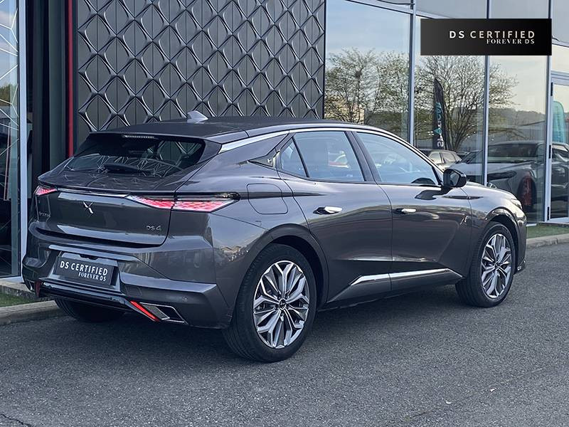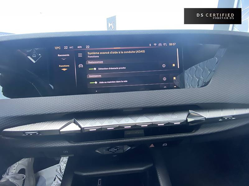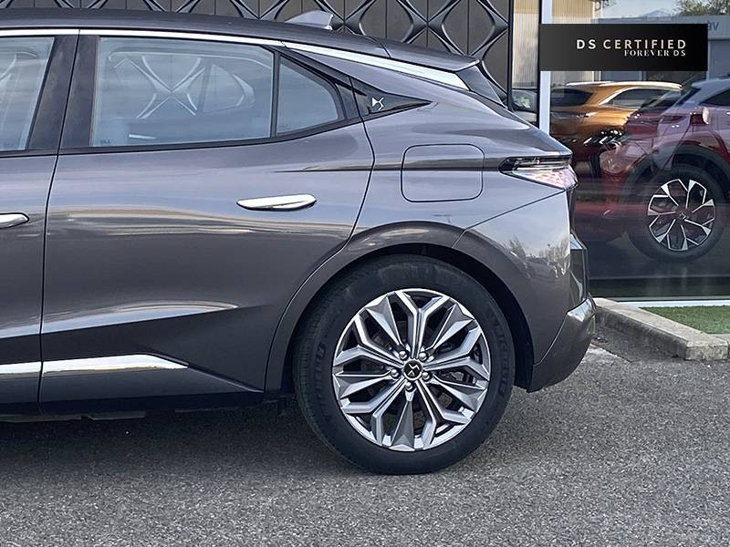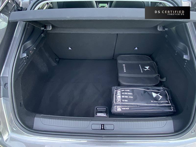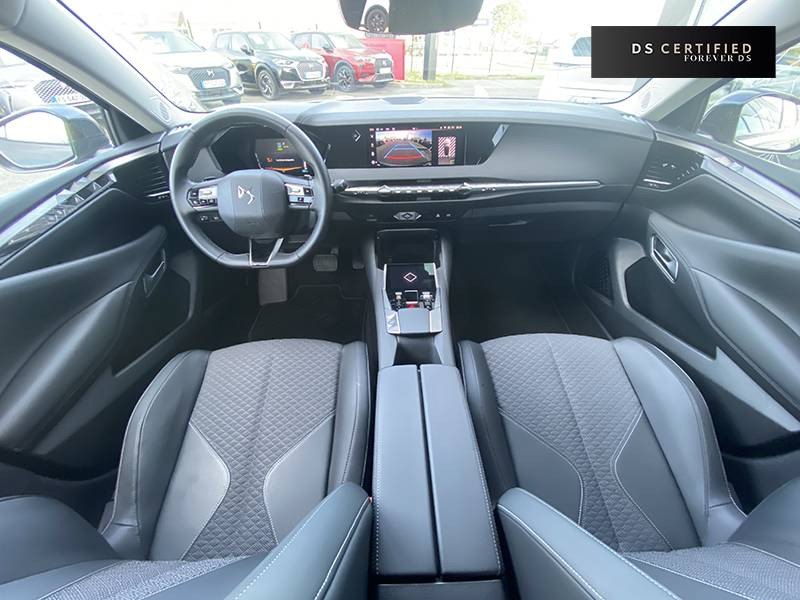 abs avec répartiteur électronique de freinage (ref) et aide au freinage d'urgence (afu) / adml proximity accès et démarrage mains-libres ave déverrouillage et déploiement automatique des poignées de portes affleurantes à l'approche du véhicule / aérateurs latéraux av déportés sur les portes / aide au stationnement av/ar avec caméra de recul / airbag central entre les places av / airbags frontaux aux places av avec désactivation par clé de l'airbag passager / airbags latéraux de type "thorax" aux places av / alerte attention conducteur / allumage automatique des feux de détresse en cas de forte décélération / antenne radio "aileron de requin" / appuie-tête av à réglages intégrés à 4 voies / avertisseur bi-ton / avertisseur de risque de collision / banquette ar 2/3 - 1/3 avec 3 appuie-tête / bas de portières avec insert chromé / câble de recharge mode 2 standard 1,8 kw (8 a) / câble de recharge mode 3 monophasé 7,4kw / cabochons d'écrous de roue chromés / chargeur embarqué de 7,4 kw / clignotants impulsionnels 3 coups / combiné numérique 7" / console centrale avec 2 porte-gobelets / console centrale avec compartiment rangement fermé / contrôle de traction intelligent / contrôle dynamique de stabilité (esp) avec antipatinage des roues (asr) / coques de rétroviseurs extérieurs noir perla nera / crochet d'arrimage dans le coffre au dessus du plancher de coffre x4 / démarrage mains-libres avec décor trame ds sur la clé / détection de sous-gonflage / double canule d'échappement chromée / ds active scan suspension système de suspension pilotée par caméra / ds e-toggle / ds extended head up display / ds iris system / ds smart touch / ds wings chromées / eclairage d'accompagnement / eclairage d'accueil automatique / eclairage polyambient / entourage des vitres latérales chromé / feux ar 3d (traitement écailles) avec indicateur de changement de direction défilant / filet de rangement au dos des sièges av / filtre habitacle à haute efficacité (anti-particules fines) / fixations isofix à la place passager av et aux places latérales ar / freinage d'urgence automatique jusqu'à 140 km/h avec pack sécurité / freinage multi-collision / frein de stationnement électrique automatique / grille de calandre av noir brillant avec diamants chromés / guide utilisateur numérique / indicateur de rapports engagés / intérieur toile ds noir / jonc sur volet entre feux chromé / kit de dépannage provisoire / lécheurs de vitres noir brillant / lève-vitres av/ar électriques, séquentiels et antipincement / ouverture et fermeture des vitres à distance / pack style rivoli / pare-choc ar avec finition noire brillante / pare-choc av couleur carrosserie / pare soleil rembourrés en tissu avec éclairage à led / pieds de rétroviseurs extérieurs couleur carrosserie / poignées de portes affleurantes / prise 12 v dans le coffre / prises usb x2 aux places ar / prise usb data à l'av / reconnaissance vocale / rétroviseur intérieur électrochrome sans cadre / sacoche de rangement de câble de recharge mode 3 monophasé 7,4 kw avec paire de gants / sangle de coffre / sièges av à haute densité / sos & assistance / système audio analogique à 6 hp avec bluetooth / système infotainment écran 10" tactile aec mirror screen sans fil / témoin et alerte sonore de non-bouclage des ceintures de sécurité av/ar / vérins d'ouverture et de maintien du capot moteur / volant cuir gainé avec insert noir brillant / zone de danger (pendant 3 ans)