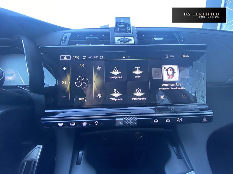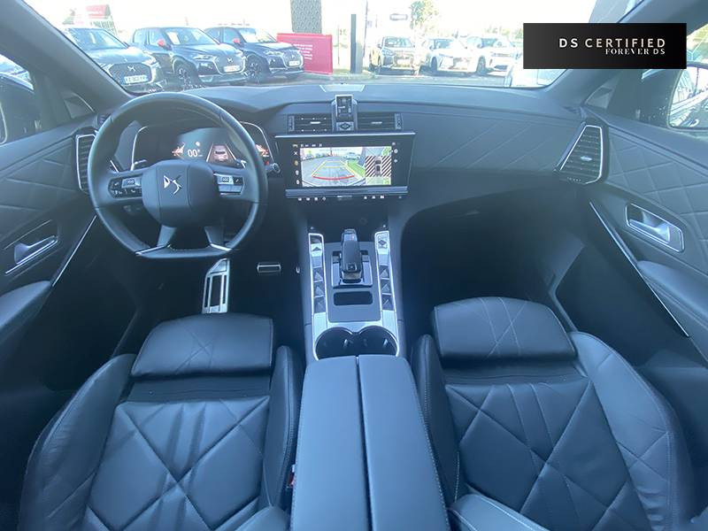 abs avec répartiteur électronique de freinage (ref) et aide au freinage d'urgence (afu) + aide au démarrage en pente / accès et démarrage mains libres / accoudoir central en toile ds avec rangement / aide au stationnement av/ar et caméra de recul / airbags frontaux (passager déconnectable), latéraux av, rideaux av/ar / alerte attention conducteur / allumage automatique des feux avec commutation automatique des feux de route / badge ds chromé sur le capot / centre de roue noir brillant / combiné numérique 12.3" hd / contrôle dynamique de stabilité (esp) avec antipatinage des roues (asr) / contrôle électronique de stabilité de l'attelage / détection de sous-gonflage / double antennes / ds iris system système d'infotainment personnalisable de dernière génération / ds pixel led vision 3.0 / ds wings chromées / eclairage d'accueil et d'accompagnement / eclairage d'ambiance à led / eclairage de cave à pieds à led / ecran tactile capacitif 12'' hd / entourage des vitres latérales chromé / essuie-vitre av à déclenchement et cadencement automatiques + buses de lavage / feux ar 3d (traitement écailles) avec indicateur de changement de direction défilant / fixations isofix à la place passager av et aux places latérales ar inclut top teather / freinage d'urgence automatique piloté par caméra et radar / frein de stationnement électrique automatique / grille de calandre noir brillant avec pampilles chromées / intérieur cuir noir basalte / jantes alliage 19'' edinburgh, pneus 235/50 r19 v / jonc supérieur de volet noir brillant avec lettrage 'ds automobiles' chromé / jonc sur jupe ar chromé / kit de dépannage / lève-vitres av/ar électriques, séquentiels et avec fonction antipincement / mirror screen sans fil via wifi compatible apple carplay et android auto / monogrammes ar chromé / montre rotative b.r.m. r180 / navigation 3d connectée information trafic en temps réel, prix des carburants,parkings et zones de danger.3 ans inclus / pare-brise teinté acoustique / poignées extérieures couleur caisse avec insert chromé / prédisposition plancher modulable à 2 positions / prises 12 v 1 prise dans le rangement av de la console centrale et 1 prise dans le coffre / prises usb 1 prise usb type c dans le rangement de la console centrale et 2 prises usb type a pour les passagers ar / rétroviseur intérieur électrochrome sans cadre / rétroviseurs extérieurs avec embase couleur caisse et coque noir brillant / rétroviseurs extérieurs électriques dégivrants, rabattables électriquement fonction électrochrome côté conducteur, projection au sol du logo ds, indexéà la marche ar côté passager / sabot av chromé / seuil de coffre chromé / seuils de portes trame ds / sièges av électriques réglage électrique du siège, réglage lombaire pneumatique, réglage mécanique du nez de coussin / sos & assistance service inclus pendant 10 ans / surtapis av/ar / surveillance d'angles morts / vérins d'ouverture et de maintien du capot moteur