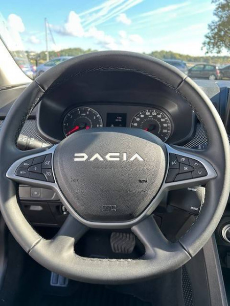 airbag latéral av : thorax + rideau / alerte franchissement de ligne et assistant maintien dans la voie / antenne requin / boîte de vitesse automate à fonction continue / console basse + rangement ouvert / eclairage du coffre / esp+asr / feux ar avec signature lumineuse y / fonction éco-mode / jantes 16'' randia / kit de gonflage / media display (écran tactile 8'' sans navigation, radio, réplication smartphone usb, 4 haut-parleurs audiostreaming bluetooth, satellite de commandes au volant, 1 prise usb-a et 1 prise usb-c) / peinture opaque / plancher de coffre double niveau / prédisposition ethylotest / rappel de bouclage de ceintures / sellerie avec surpiqures grises / signature lumineuse dacia en y à led / spécifique journey (rétroviseurs extérieurs noir nacré, tapis de sol textile, seuils de porte av) / système de freinage d'urgence avancé (pieton, deux-rorues et intersection) / tableau de bord avec écran numérique 3,5'' et compteurs analogiques / volant soft feel tep